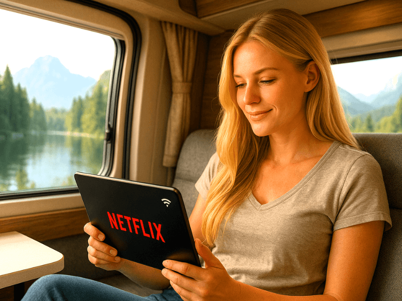 Ob E-Mail-Verkehr, Zoom-Meetings oder Remote-Desktop – mit stabilem Internet sind Sie auch im Camper produktiv und jederzeit einsatzbereit. - Filme & Serien streamen (Netflix, Amazon Prime, Disney+)